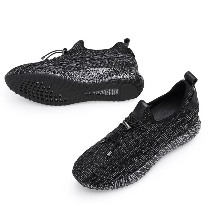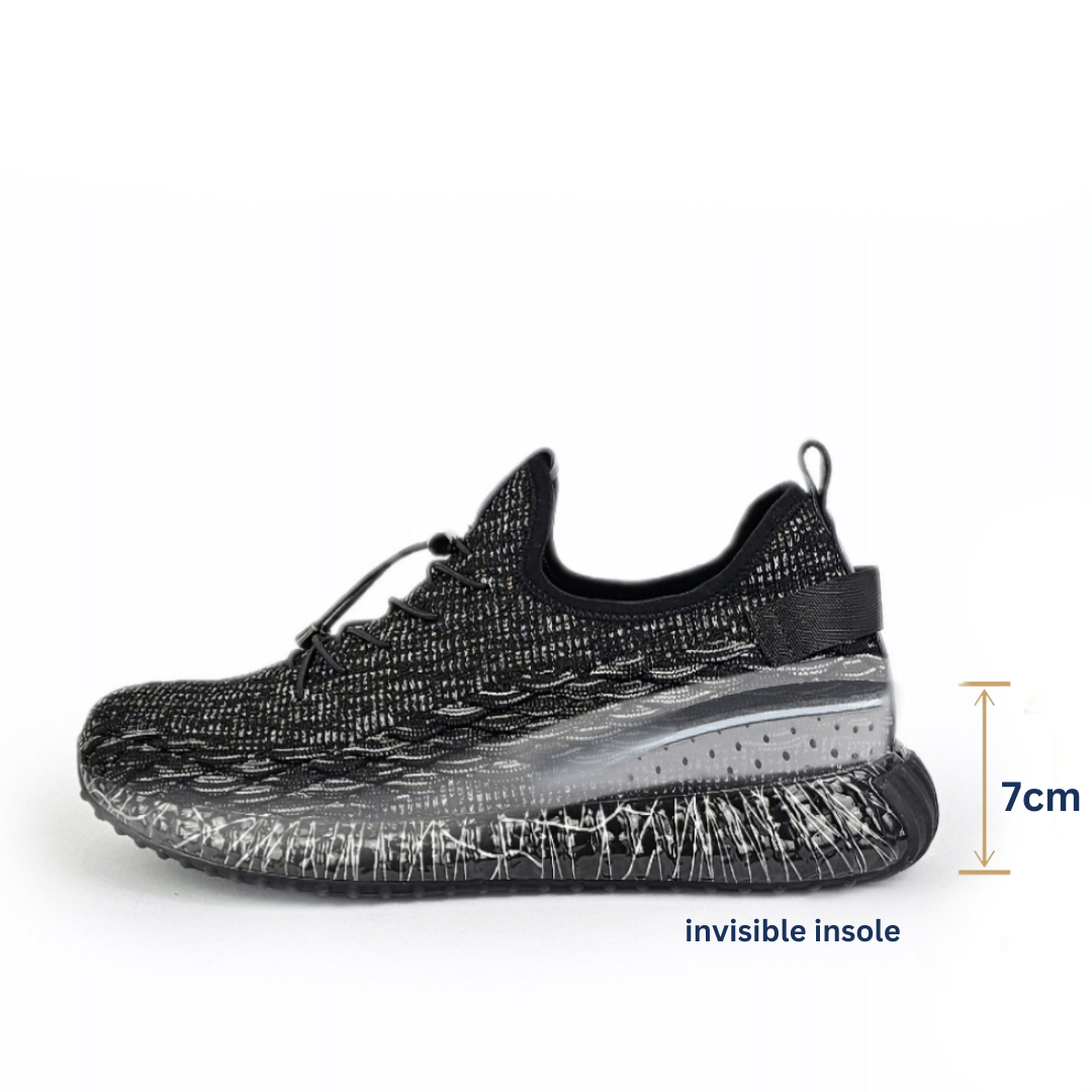 Introducing Cordoba Black Elevator Sneakers - the perfect solution for shorter men who want to add a few extra inches to their height without sacrificing style or comfort. Expertly handcrafted from breathable fabric, these trendy and comfortable shoes are designed to meet the needs of the modern, fashion-conscious man. Our innovative, invisible insole not only provides superior cushioning and support but also boosts your height 7cm discreetly, giving you the confidence to step out in style. The sleek black design of these sneakers allows for easy pairing with any outfit, making them a versatile addition to your wardrobe. Experience unparalleled comfort and a trendy look with our Black Elevator Sneakers – the ultimate footwear choice for those looking to stand tall and make a statement.