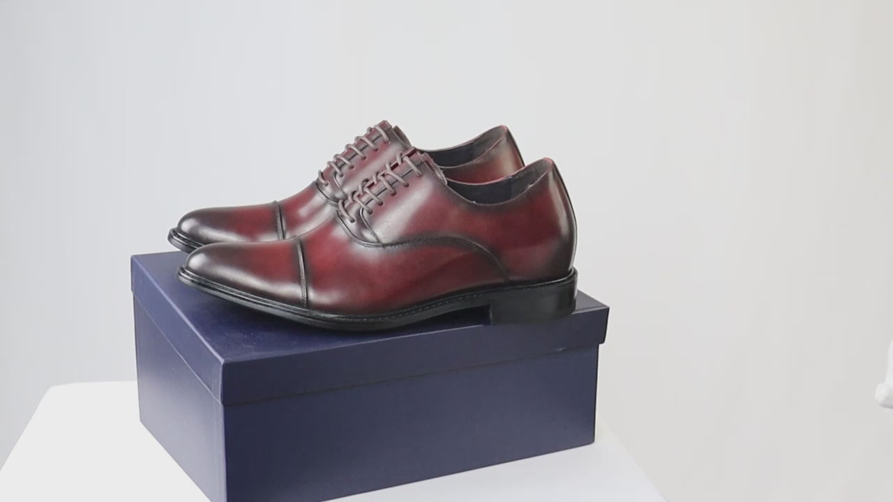 Step out in style and confidence with Zaragoza's dress elevator shoes. Our elegant design is hand-painted with leather, giving it a timeless look perfect for any formal occasion. A comfortable layer of cushioning and an invisible height-increasing insole make these shoes a must-have for any dapper gentleman. With Zaragoza, you can experience the comfort and style you deserve while gaining up to 7cm in height. Zaragoza Burgundy Mens Height increasing hand Painted Cap Toe Oxfords leather elevated shoes making you 7CM/2.76 Inches Taller